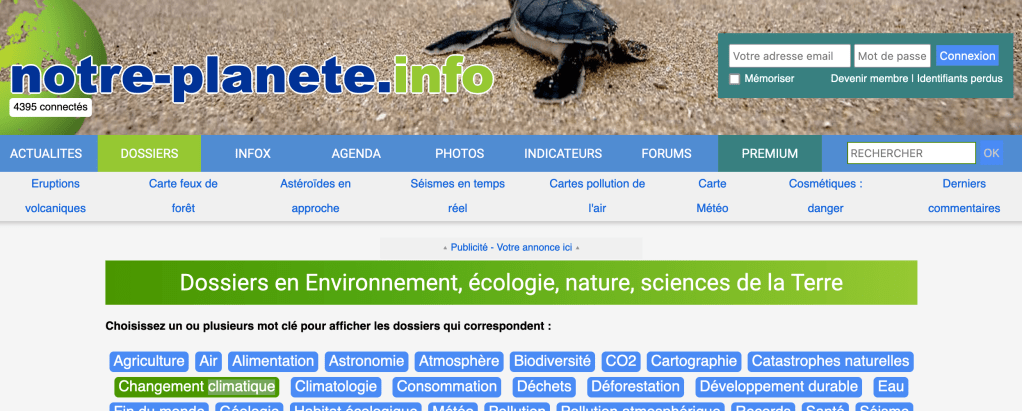 Une page entière de ressource sur notre planète info sur le changement climatique