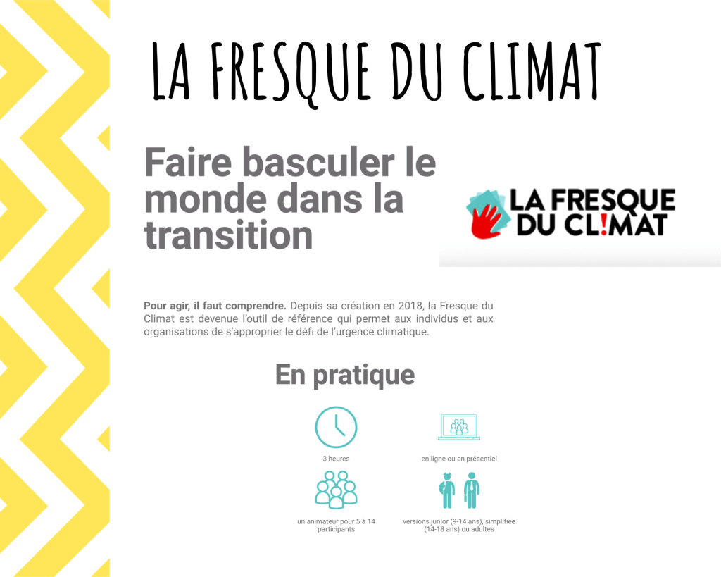 Contactez-nous pour organiser des ateliers « La fresque du climat » Junior ou adulte pour vos élèves ou votre personnel. Nous pouvons former vos professeurs et vous aider à organise rune rentrée climat dans vos établissements ou un atelier pour votre entreprise.